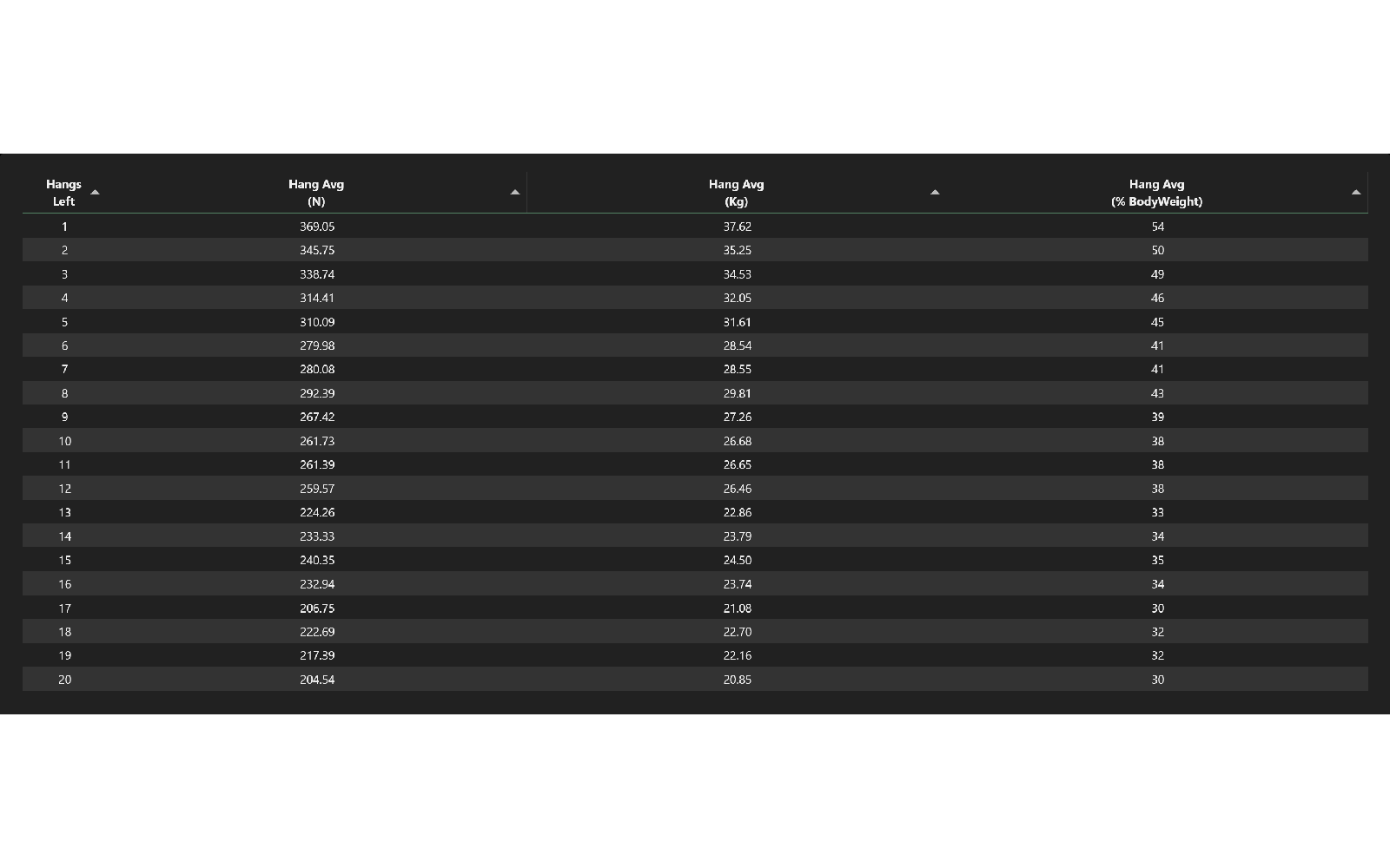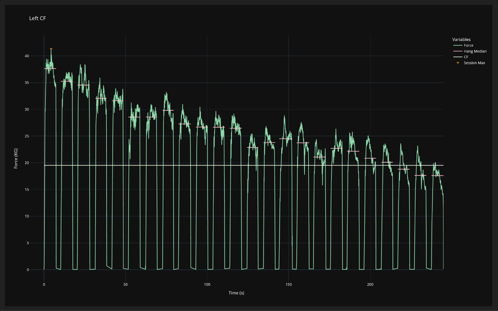 - Short-Term Maximum Strength: The Critical Force Test assesses an athlete’s finger strength. It reveals the maximum strength available for short bursts of effort.