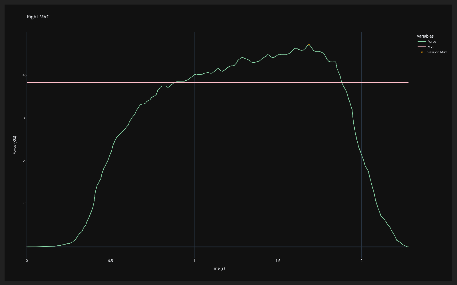 - Maximum Voluntary Contraction assessments of both hands in your chosen grip for 5s, 7s and 10s periods